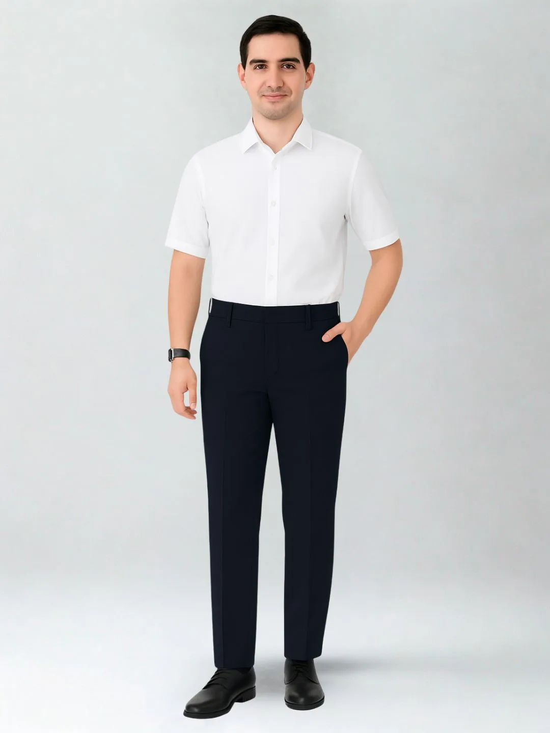 Elevate your formal wardrobe with the Zee Gold Ultra-Comfort Tailored Hook-Closure Trousers, crafted from a premium, smooth-finish fabric designed for exceptional comfort. The refined texture adds a distinctive, polished touch, while the tailored fit ensures all-day ease—perfect for the office or special occasions. Finished with a sleek hook closure for a clean, modern look, these trousers embody sophistication and versatility. Experience the refined elegance that complements your professional attire effortlessly.